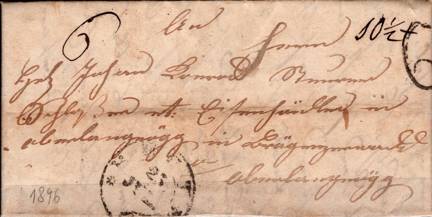 Dieser Brief ist der bislang einzig bekannte Brief, bei dem Postmeister Angerer die Gebühr sowohl handschriftlich anbrachte wie auch stempelte.